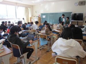 終業式後には、代表委員会から冬休みのめあてを発表し、生徒指導主任の先生から冬休みの注意の話をしてもらいました。