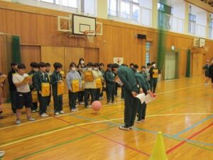 2月25日(水) 3年生がクラブ見学を行いました。クラブは4つ(卓球、屋外スポーツ、屋内レク、バドミントン・ソフトバレー)あり、水曜日の6時間目に活動しています。今日は雨模様だったので、屋外スポーツはバドミントン・ソフトバレーと合同で、ドッジボールを行っていました。