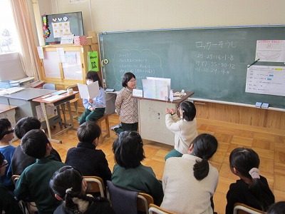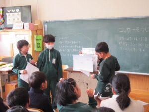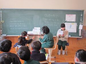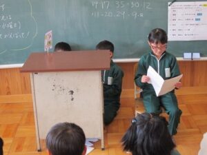 これまでに調べた秩父の民話について班ごとにクラスの人たちに向けて発表を行い、聞いている人たちからアドバイスをしてもらいました。