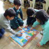 2月19日(月) 1年生が算数の授業で文章問題に取り組んでいました。問題文を読み、まず、「わかっていること」に直線を引き、「きかれていること」に波線を引きます。次に、単位を丸で囲みます。それから、具体物(マグネットやブ…