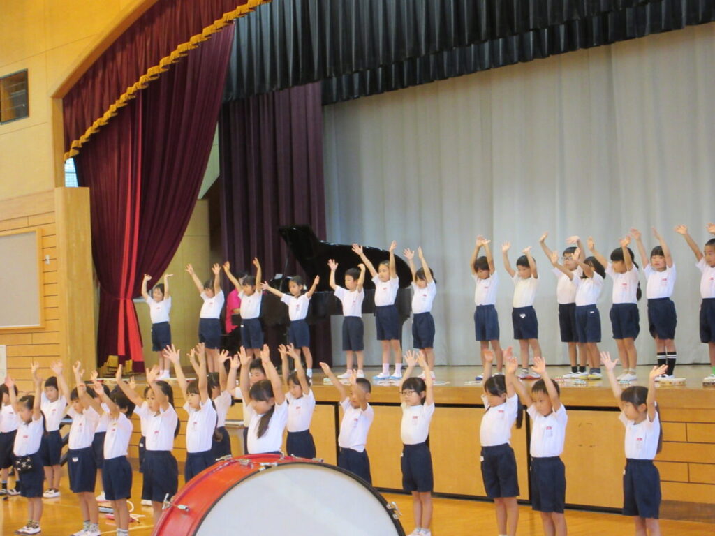 本日の児童集会は音楽集会で1年生の発表です。まず、全校で応援団のリードのもと、今月の歌『ゴーゴーゴー』を歌いました。次はいよいよ1年生の発表です。♪「にじ」を手話を付けて歌い、♪「しろくまのジェンカ」をダンスや合奏をつけて演奏しました。何日も前から練習を重ね、堂々と発表できました!いつもはかわいいい1年生が、今日はかっこいい1年生に見えました。保護者の皆様、ご来校いただきありがとうございました。