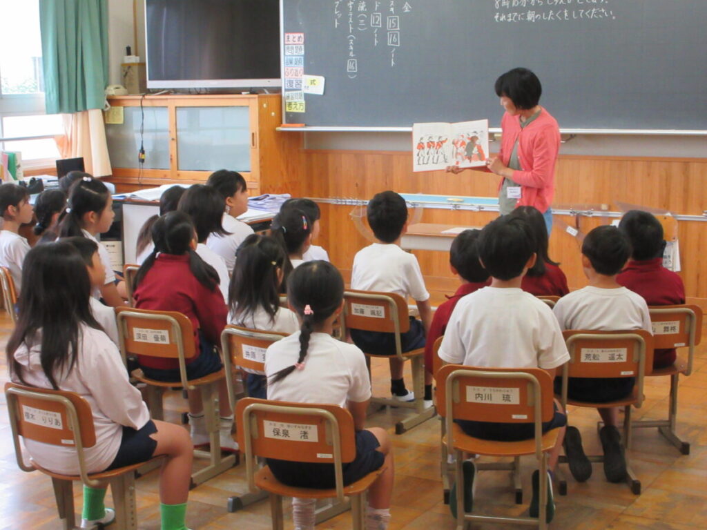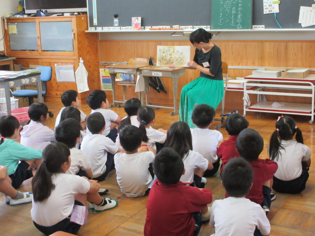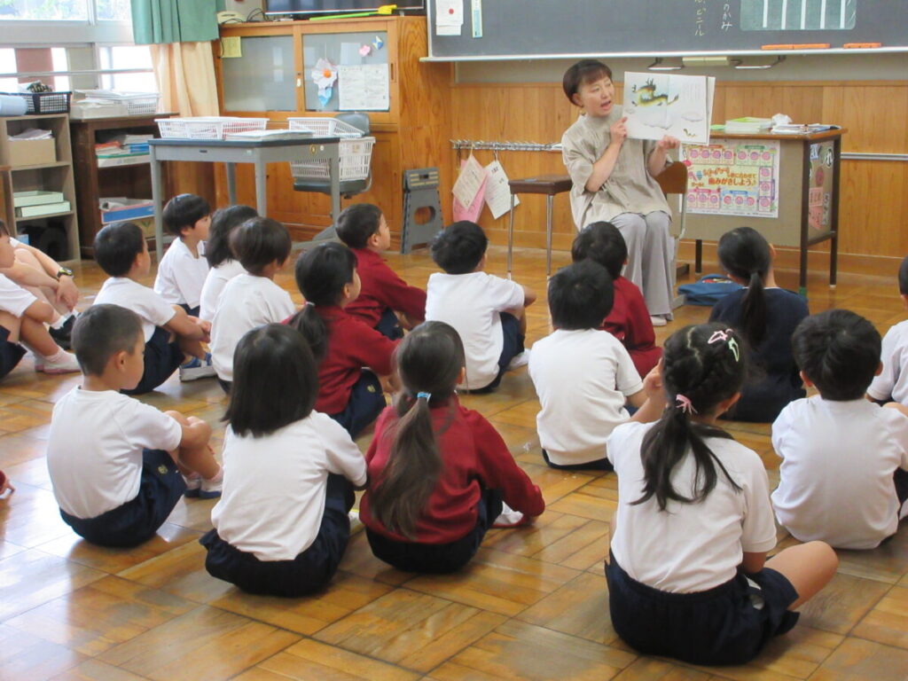 本日の業前活動は、学校応援団読み聞かせボランティアさんに8名来校していただき、