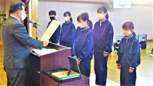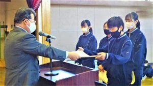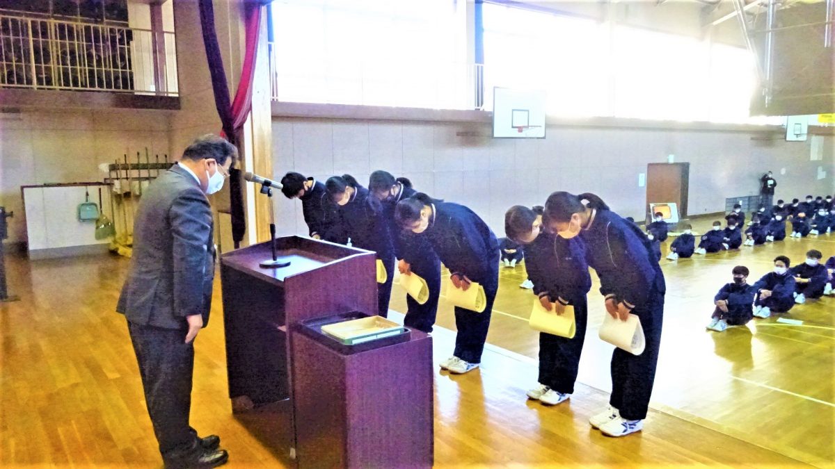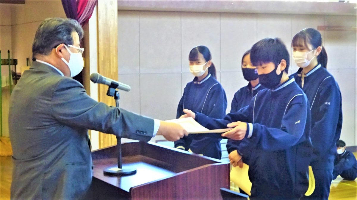 12月8日(火)朝、表彰と生徒朝会が行われました。