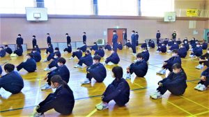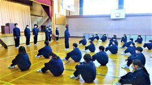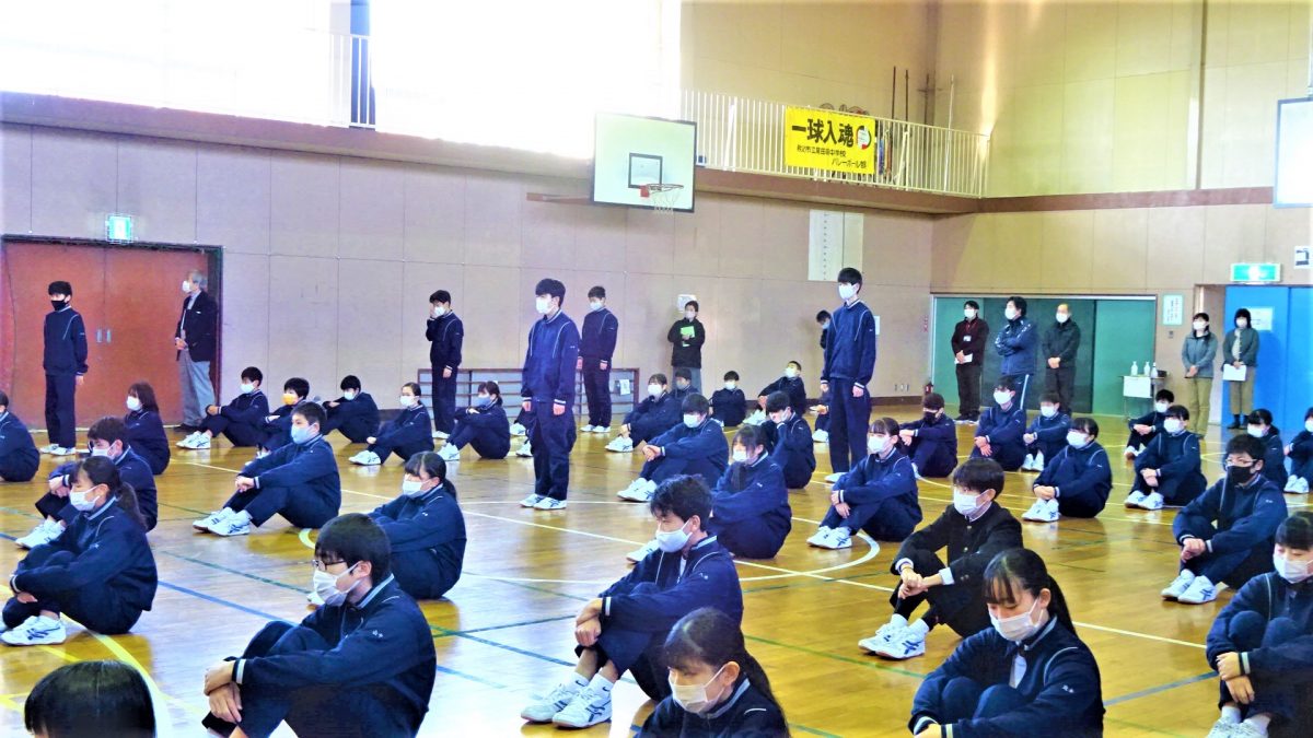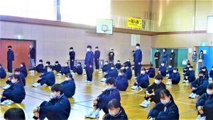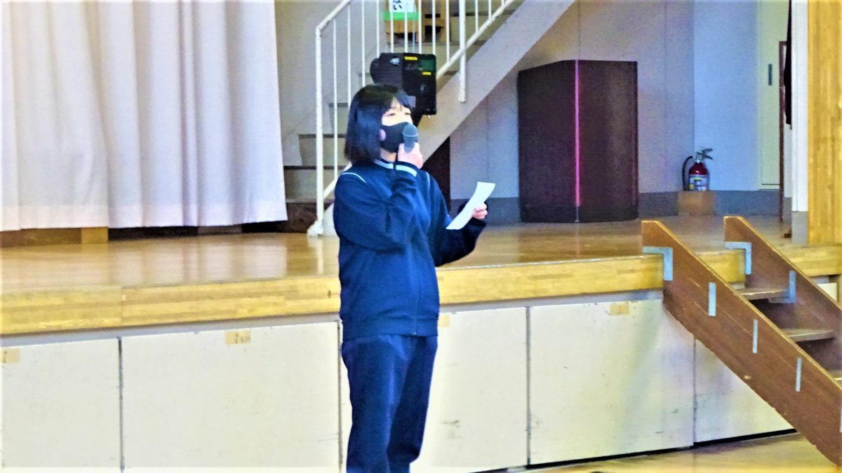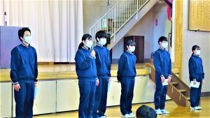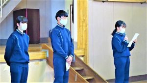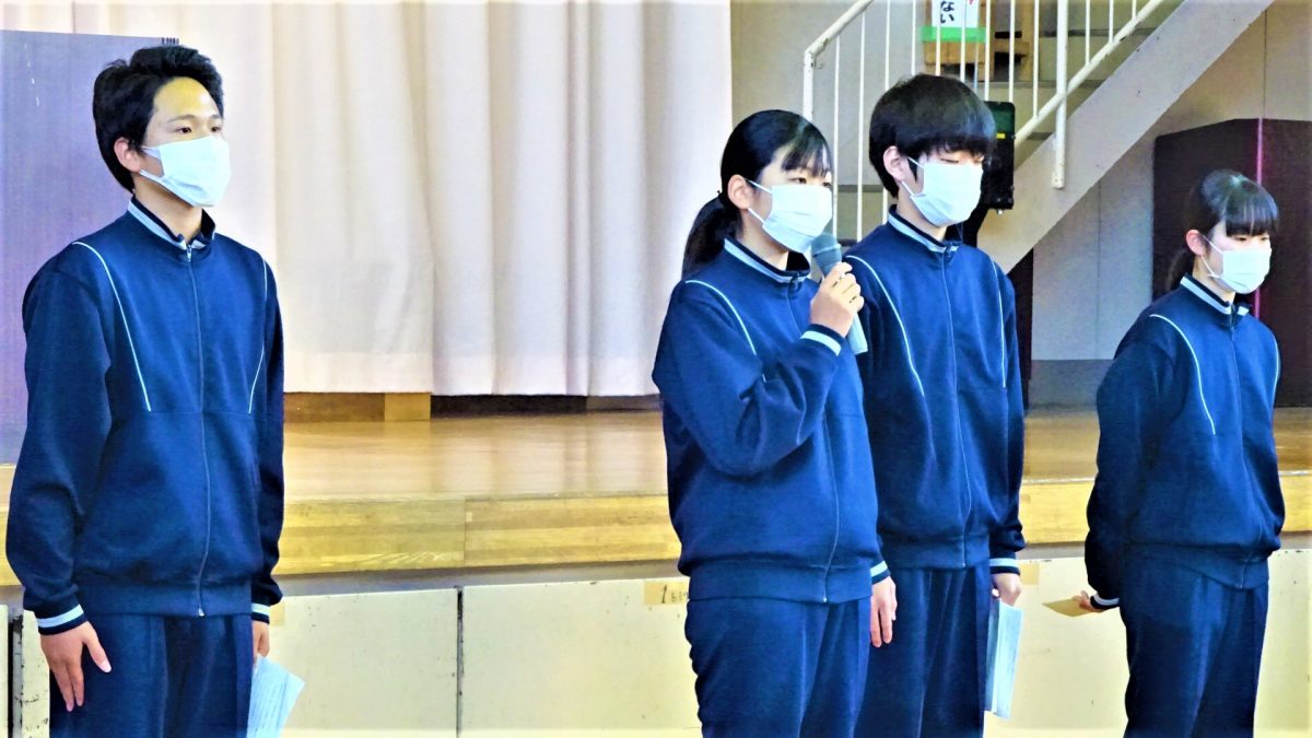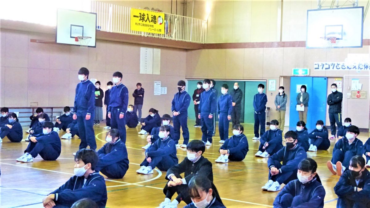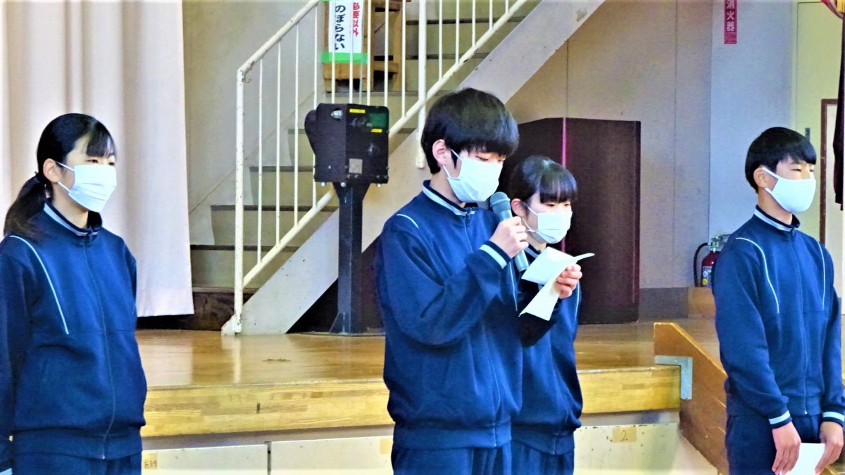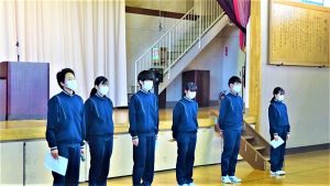 12月11日(金)、12日(土)に行われる秩父地区中学校スポーツ交流大会に向けて生徒会長から激励の言葉が贈られ、各運動部の部長からは大会への決意が述べられました。