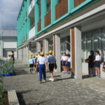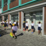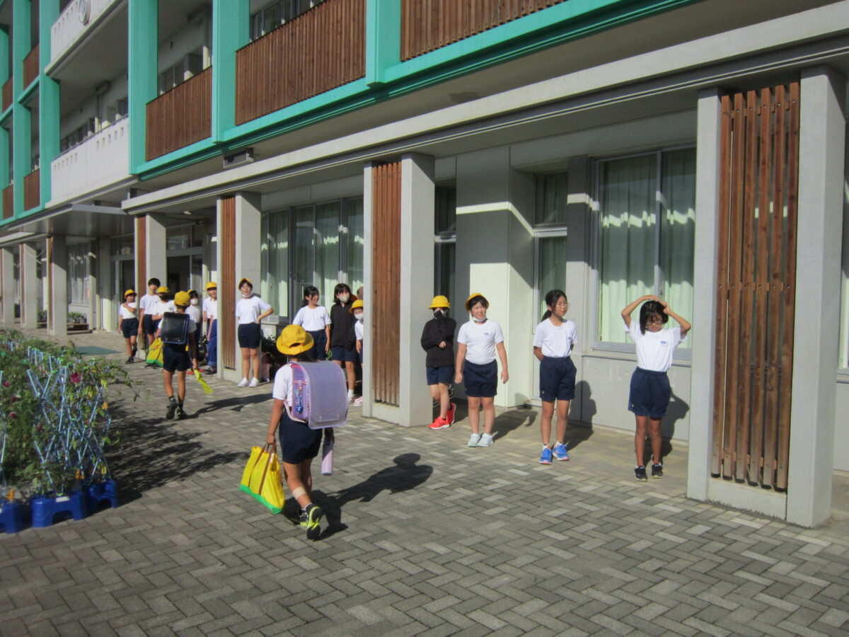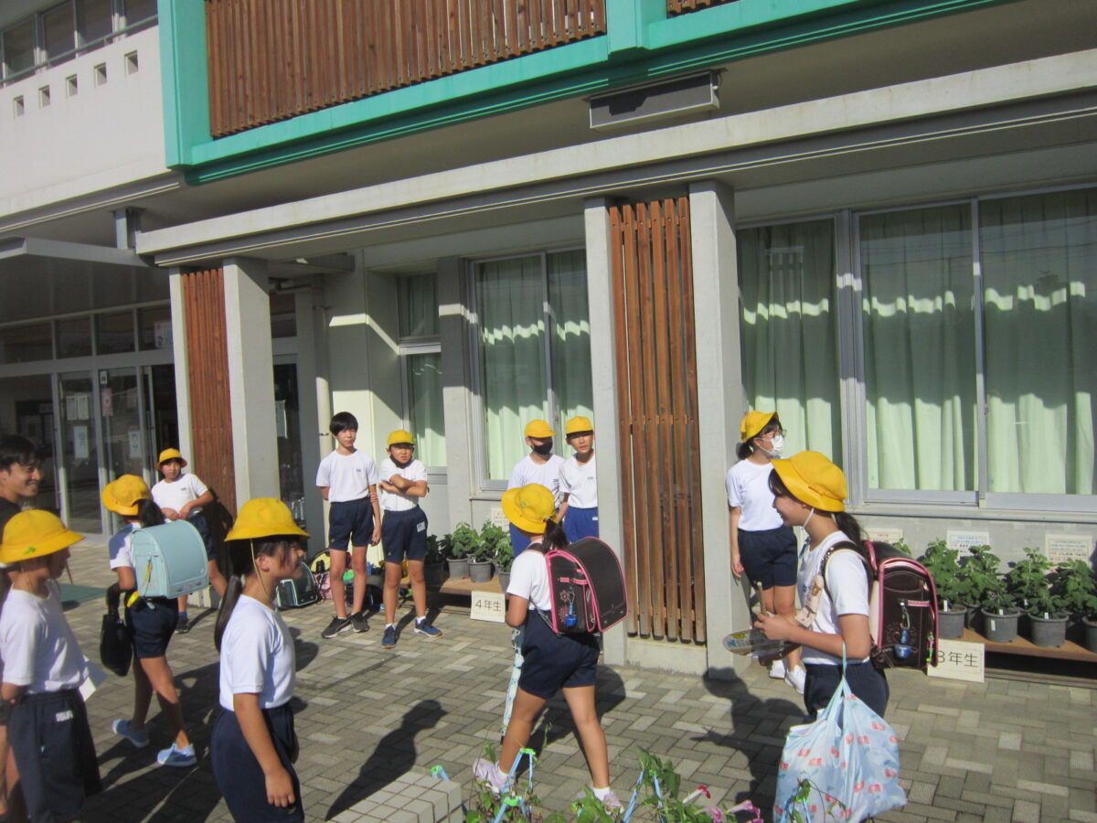 今朝は気持ちのよい青空が広がり、5年生があいさつ運動を行いました。
