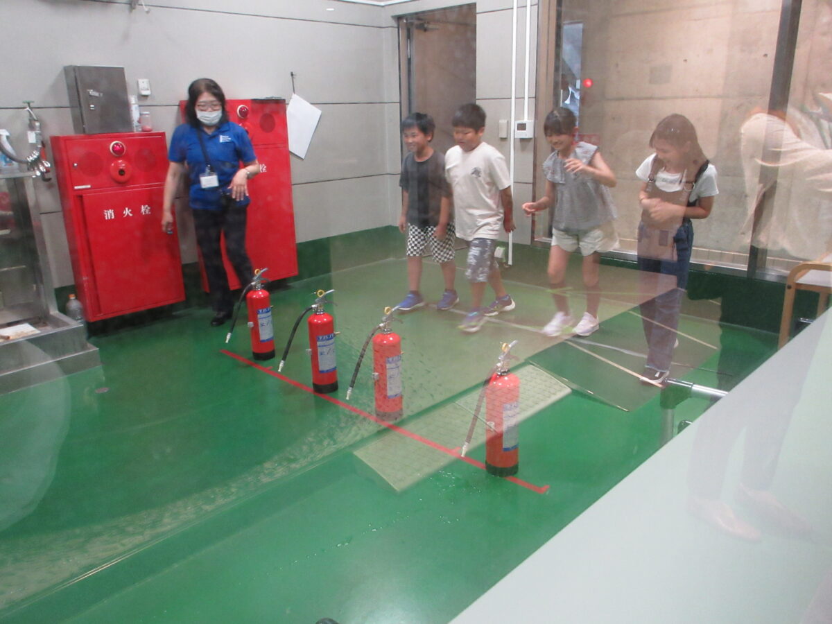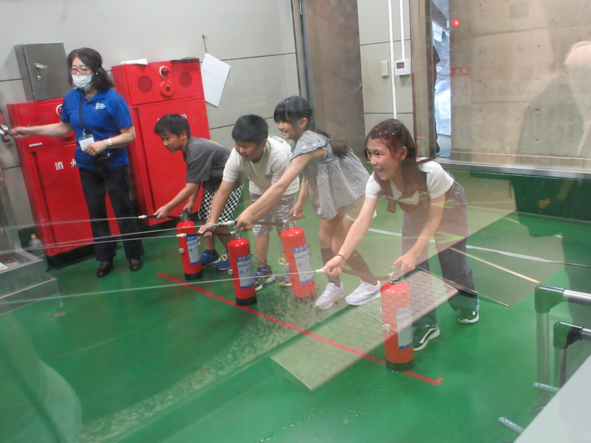 「防災学習センター」で、まず、楽しみにしてきたお弁当を食べました。友達と食べるお弁当は何倍も美味しく感じました。そして、防災学習スタートです。震度7の地震体験、けむり体験では煙を吸わないようにハンカチで口をおさえて、身体を低くして進みました。消化体験は、消化器の使い方やまず、家事をまわりに教えて消すことが大事だと教えてもらいました。いざという時、自分の命は自分で守ることの大切さをあらためて考えることができました。