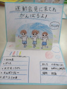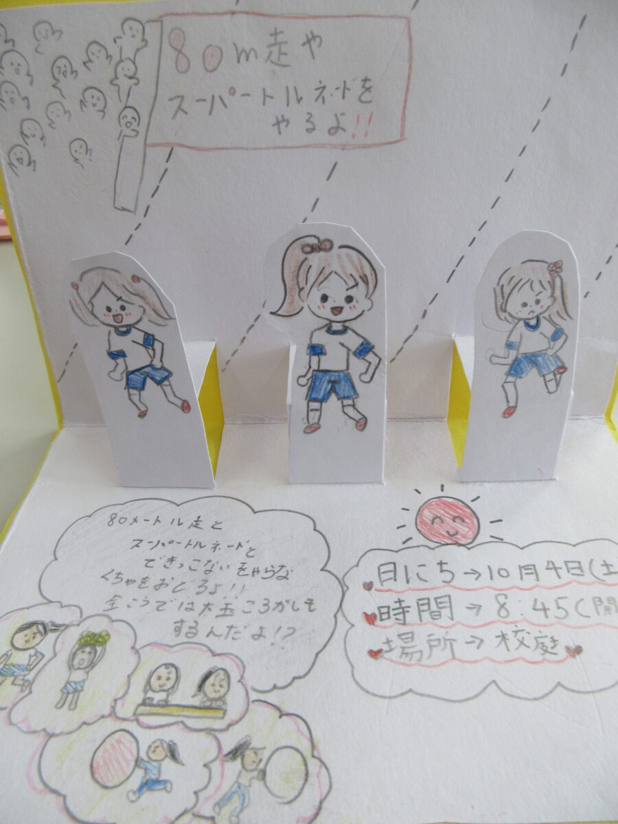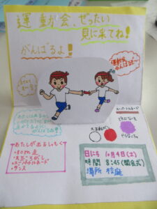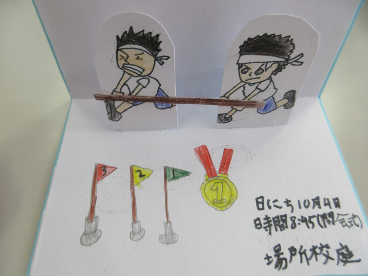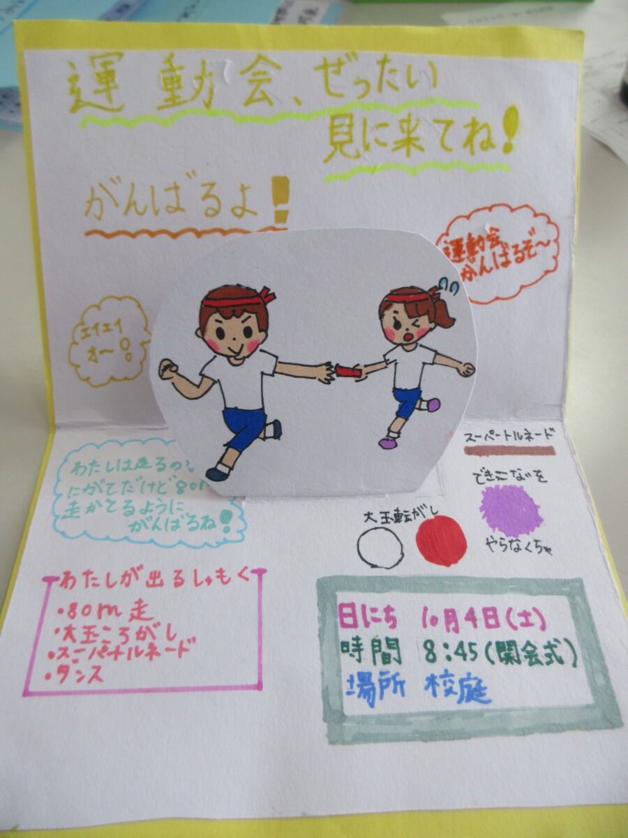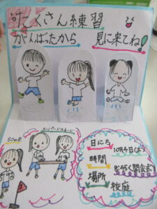 いよいよ今週10月4日(土)が運動会です。暑さに負けず、練習も全力で頑張ってきました。ぜひ、運動会に起こしいただき、大きな声援をお願いいたします!4年生が運動会招待状を作成しました。いつも応援してくれる皆さんに感謝の気持ちを込めて、招待状も全力で作りました。