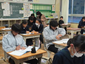 11月26日(火)に、期末テストに向けたテスト前学習会を行いました。問題集等に取り組んだり、わからないところを教科担当者に聞いたりしながらテスト勉強を行いました。