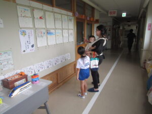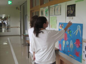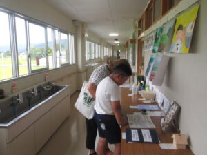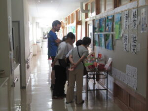 昨日、夏休み作品展の2日目でした。多くの皆様に来校していただき、作品展だけでなく、廊下の掲示物等も参観していただきました。2日間で31人の方々に来校していただきました。ありがとうございました。