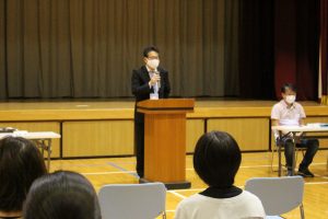 10月2日(金)夜7時から体育館にてPTA理事会が行われました。10月の第2週より、地区の理事の皆様にご苦労いただき、各地区を回り、課外活動振興助成金を集金していただきます。通常ですと、高篠中学校生徒のいるご家庭は2300円(区で一括納入している場合は1800円)、一般家庭は500円にてご協力お願いします。集めたお金は各部活動の活動費や物品購入補助にあてたり、3年生の修学旅行のコロナ対策費、及び2年生の林間学校での密を避けるためのバス2台利用等に使わせていただきます。よろしくお願いいたします。
