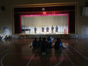 1、2年生で練習を行いました。どのような出し物になるのでしょうか。3週間後が楽しみです。