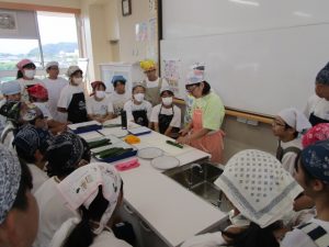 1年生で初めての調理実習を行いました。久しぶりの調理実習で、目を輝かせて実習をしていました。