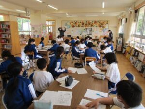 1年生に図書室利用の説明を行いました。国語の授業の一環で、読書指導をしています。本をたくさん読みましょう。