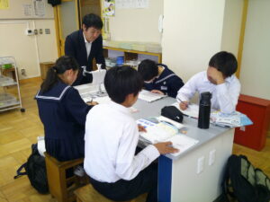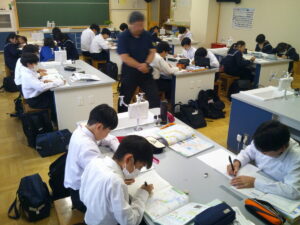 高篠中では、先週の木曜日の帰りの会終了後から高中自習室を理科室で実施しています。
