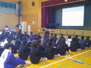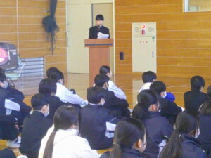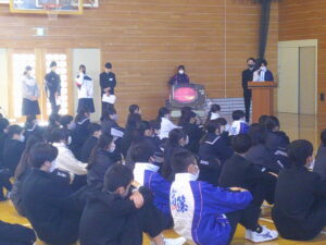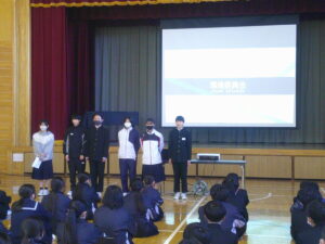 今日の生徒朝会では、環境委員会が発表を行いました。