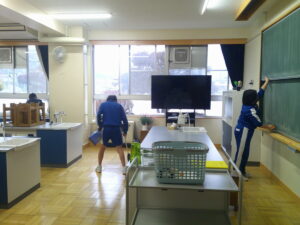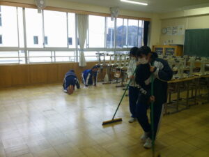 開始:授業終了後、全員がすぐに清掃を開始できている