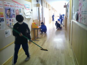 発表によると、無言や時間の意識に課題があるようですが、清掃に関わる必要な意思疎通については確実に行い、ただし余計な話はせず、15分間という限られた時間内でていねいに清掃できるようにしていきましょう!