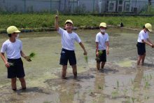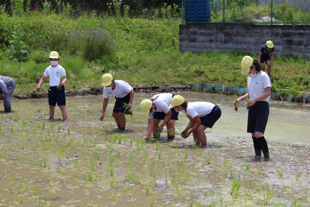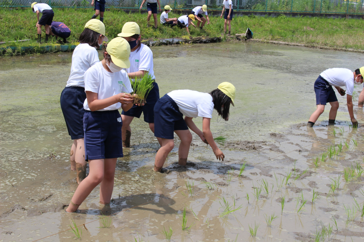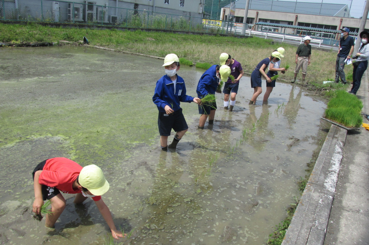 6月9日(火)5年生が田植えをしました。地域の小林さんに田を借りたり。指導していただいたりしました。ありがとうございました。ほとんどの子どもたちは初体験でしたが、楽しそうに活動していました。