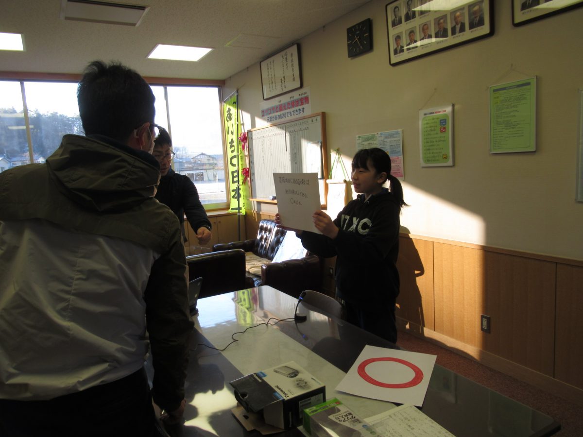 12月23日(水)なかよし朝会がありました。今朝はズーム機能を使って、代表委員が学校に関する〇✕クイズをしました。