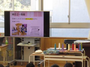 11月8日(火)秩父銘仙館の皆様による型染め体験がありました。3年生が対象です。写真にもあるように、様々なものを持ってきてくださり、子供たちが引きつけられていました。また、詳しい解説もしてくださいました。この写真のあと、型染め体験を図工室で行いました。秩父の伝統文化に触れる貴重な機会になりました。