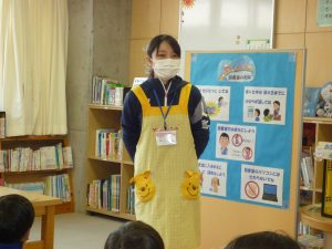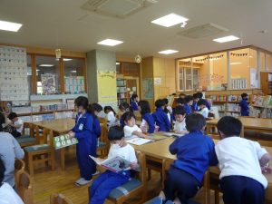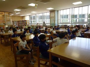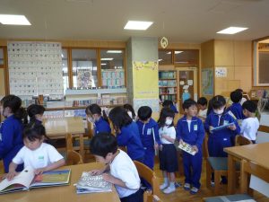4月25日(火)1年生は、図書室の使い方について学びました。集中してお話を聴き、順番に並んで好きな本を借りることができました。