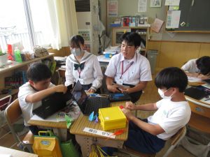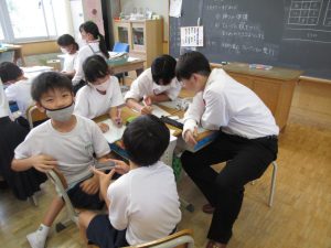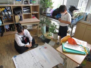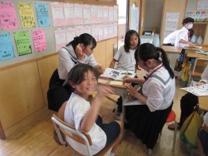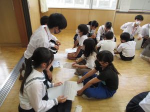 6月29日(木)高篠小学校は、秩父高校の生徒との交流会を行いました。より良いまとめを作るために、高校生に小学生が〈どうだったのか〉〈どうしたいのか〉を伝え、手伝ってもらいました。高篠小の子どもたちも、みんな嬉しそうです。秩父高校の優しいお兄さん、お姉さんありがとうございました。最後は、全員で記念撮影をしました。