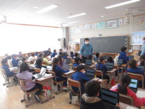 2月9日(金)、1年生がPC接続テストをしました。学力テストのデジタル化に備えて行いました。担任の先生の指示に従って、接続できるかを確認し用意された問題をタブレットで解いていきました。操作方法にはじめは戸惑いながらも、少しずつ慣れてきた様子でした。