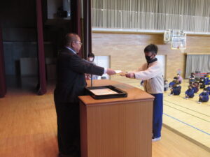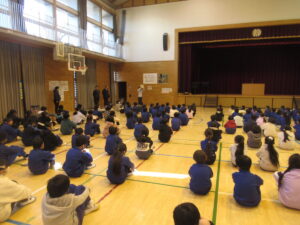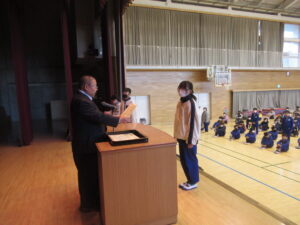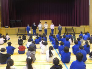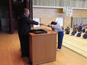 2月14日(水)に表彰朝会がありました。表彰は秩父地区書きぞめ展覧会、秩父地区児童生徒美術展覧会について行いました。名前を呼ばれたら元気よく返事をしてその場に立ち、代表者が登壇して賞状を受け取りました。その後は代表委員会からの発表もありました。子どもたちもしっかりと話を聞くことができました。