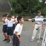 望遠鏡を使用して、太陽と地球の大きさの違いを確認しました。