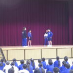 11月6日(水)のなかよし朝会で、代表委員会の児童が工夫をこらした寸劇を披露したり、生活目標の発表をしたりしてくれました。