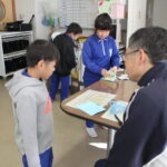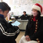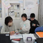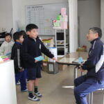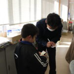 2年生がかけ算九九を練習しています。休み時間に職員室の先生方に九九を聞いてもらっています。