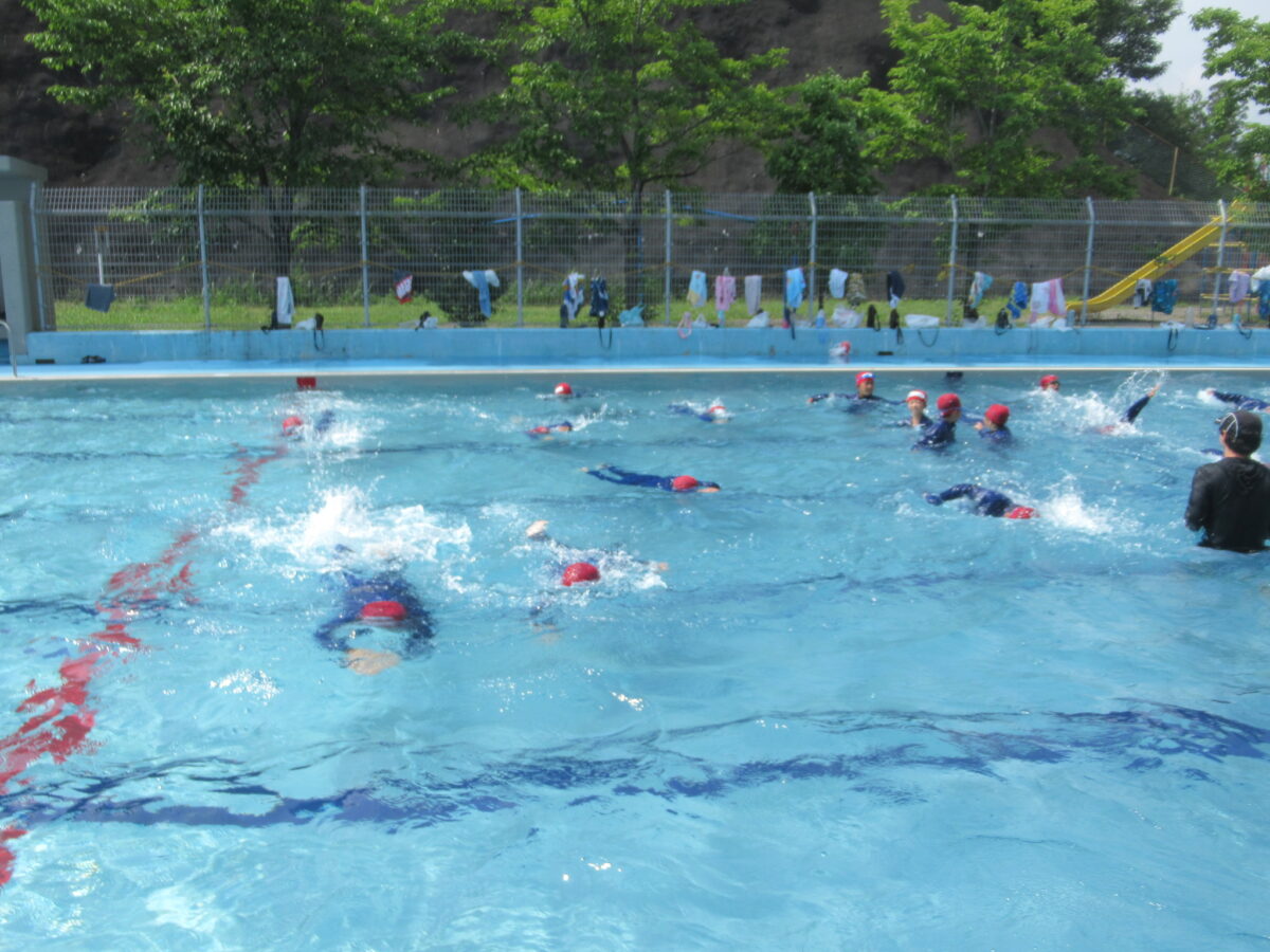 7月4日(金) 3・4年生が水泳学習の一環で、着衣泳を行いました。着衣のまま水に濡れると動きにくいこと、何かに捕まって、浮いて待つこと等を学習しました。