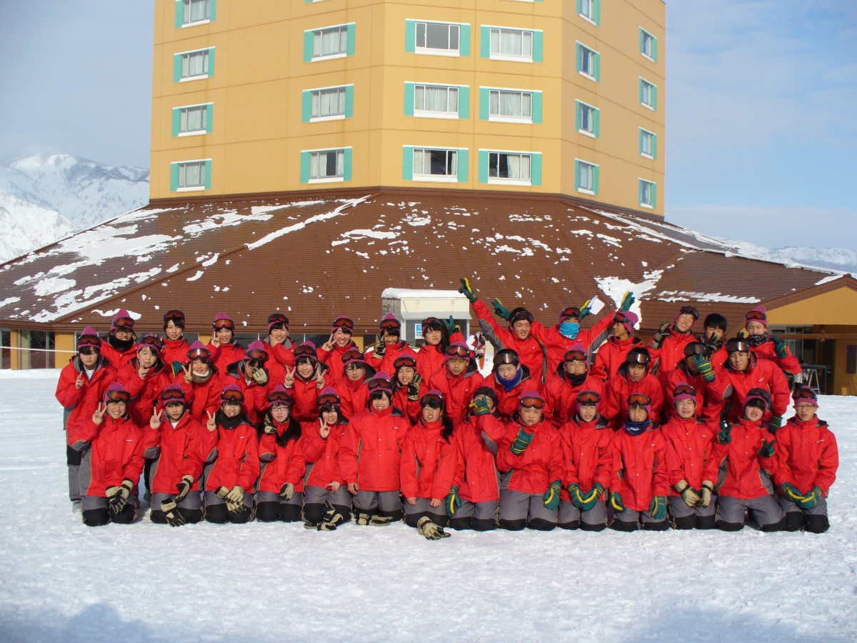 1月29日(木)30日(金)1泊2日でスキー教室がありました。(新潟県舞子高原スキー場)「集団行動を守り、楽しいスキー教室にしよう!」のスローガンのもと、実行委員長の新井めぐみさんをはじめとする実行委員を中心として活動が行われました。スキーとスノボーにわかれ、それぞれのインストラクターの指導によりあっという間に上達しました。天気にも恵まれ充実したスキー教室になりました。