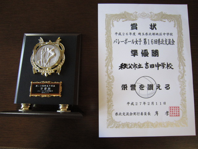 ・2月11日(水)に行われたバレーボールの県北交流会で本校バレーボール部が準優勝に輝きました。