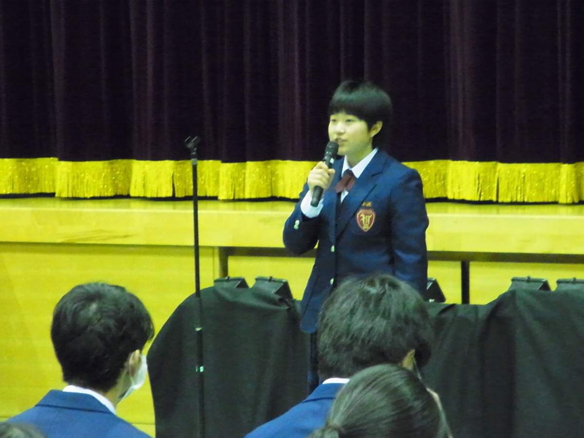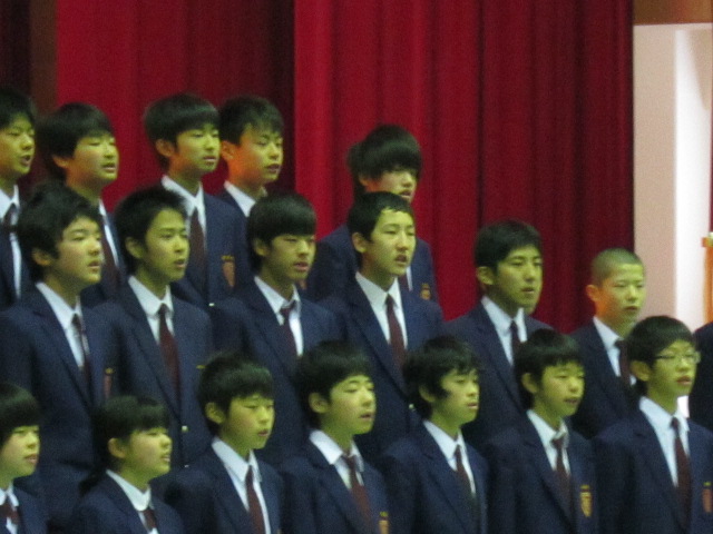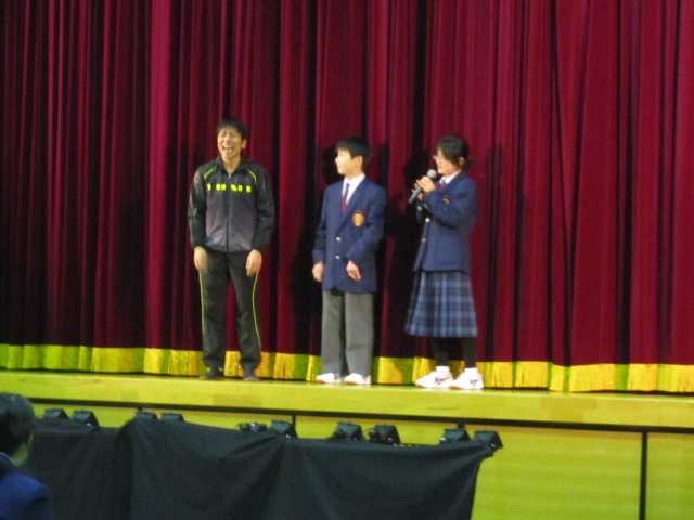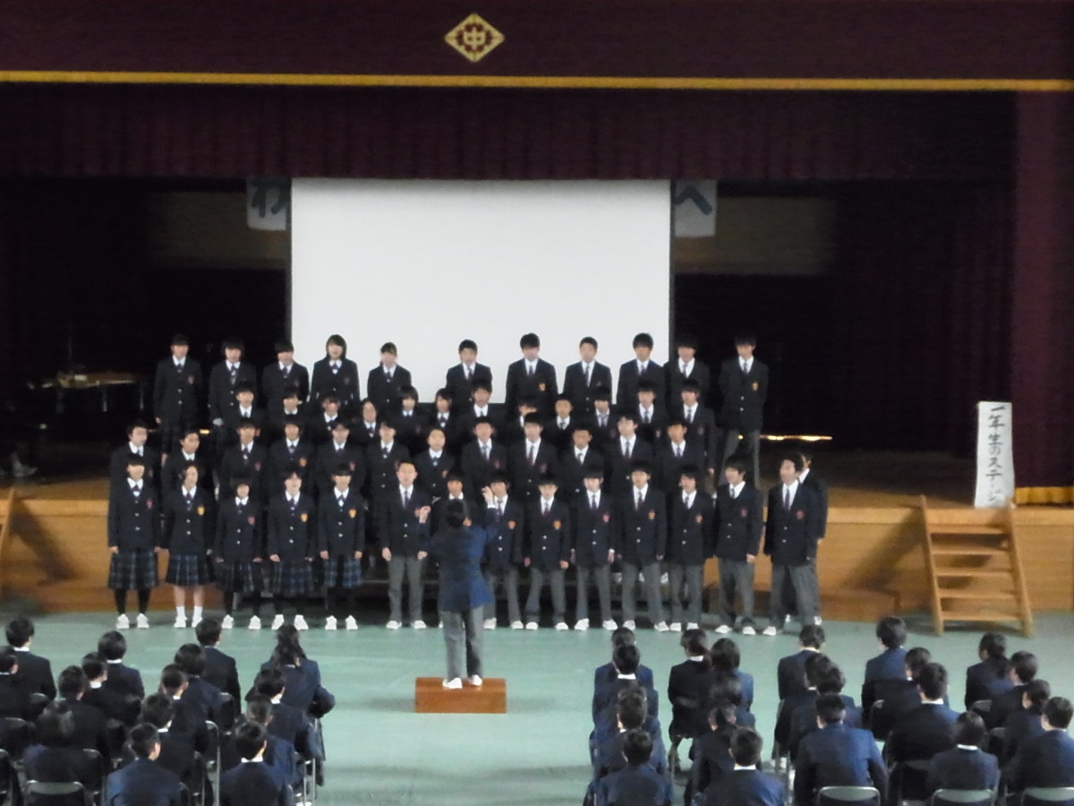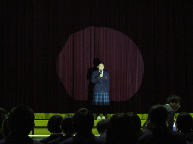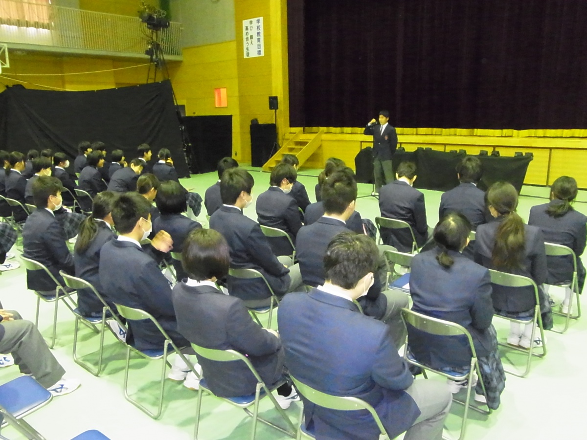 9日(月)3年生を送る会がありました。「忘れられない日をあなたに」(2年金森里佳子さん)をスローガンに、葭田実行委員長を中心に準備してきました。前半は劇団民話芸術座による「おけさのひょう六」という劇で、3年生の杉山さんが出演し、見事な演技を見せてくれました。後半は1年生(卒業一人一人への感謝の言葉と合唱)、2年生(ダンスやパフォーマンスと感謝の言葉と合唱)の出し物、先生方の合唱や思い出のスライド、AKBの音楽にのせた先生方や保護者、小学校の先生も出演したPVを流しました。またサプライズで現在川崎フロンターレに所属しているJリーガーの新井章太さん(H15年度卒)からもお祝いメッセージをいただきました。3年生からも全職員への感謝の手紙と在校生への熱いメッセージと合唱をおくってもらいました。スローガンどおり忘れられない、楽しく温かい3年生を送る会になりました。多数の地域・保護者の方にも寒い中ご覧いただきありがとうございました。