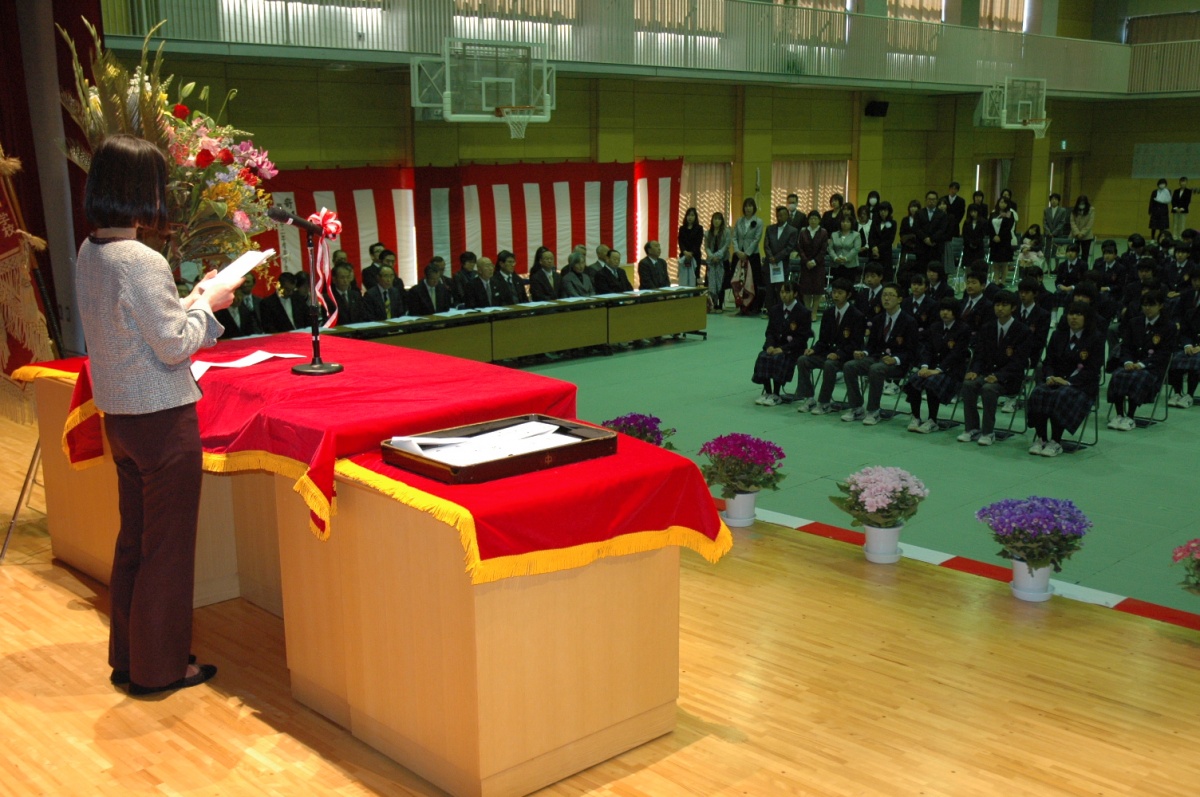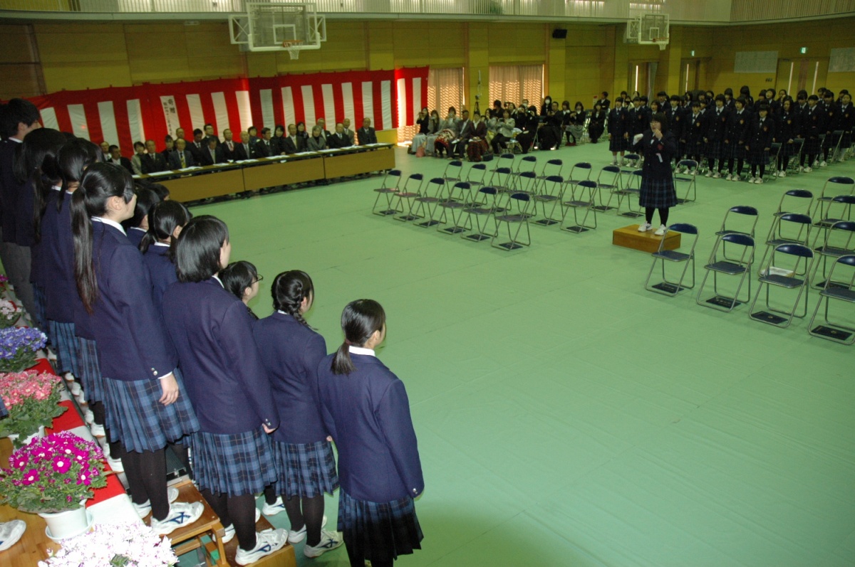 15日(火)新井教育委員様をはじめ多くのご来賓、保護者の皆様のご臨席を賜り、第49回卒業証書授与式を盛大に挙行することができました。感動的な卒業式でした。42名の生徒たちはそれぞれの進路に巣立っていきました。ネクストステージでのご活躍をお祈りします。これまでご支援いただいた保護者の皆様、生徒の指導に関わっていただいた地域の皆様に感謝申し上げます。
