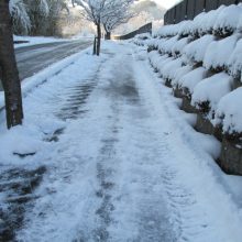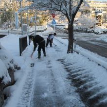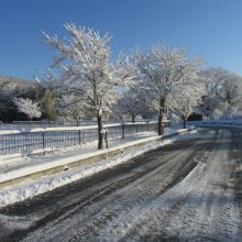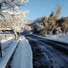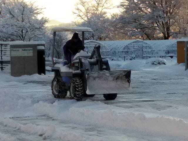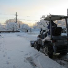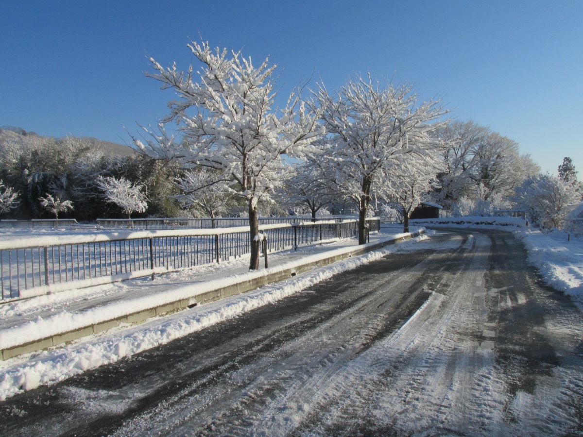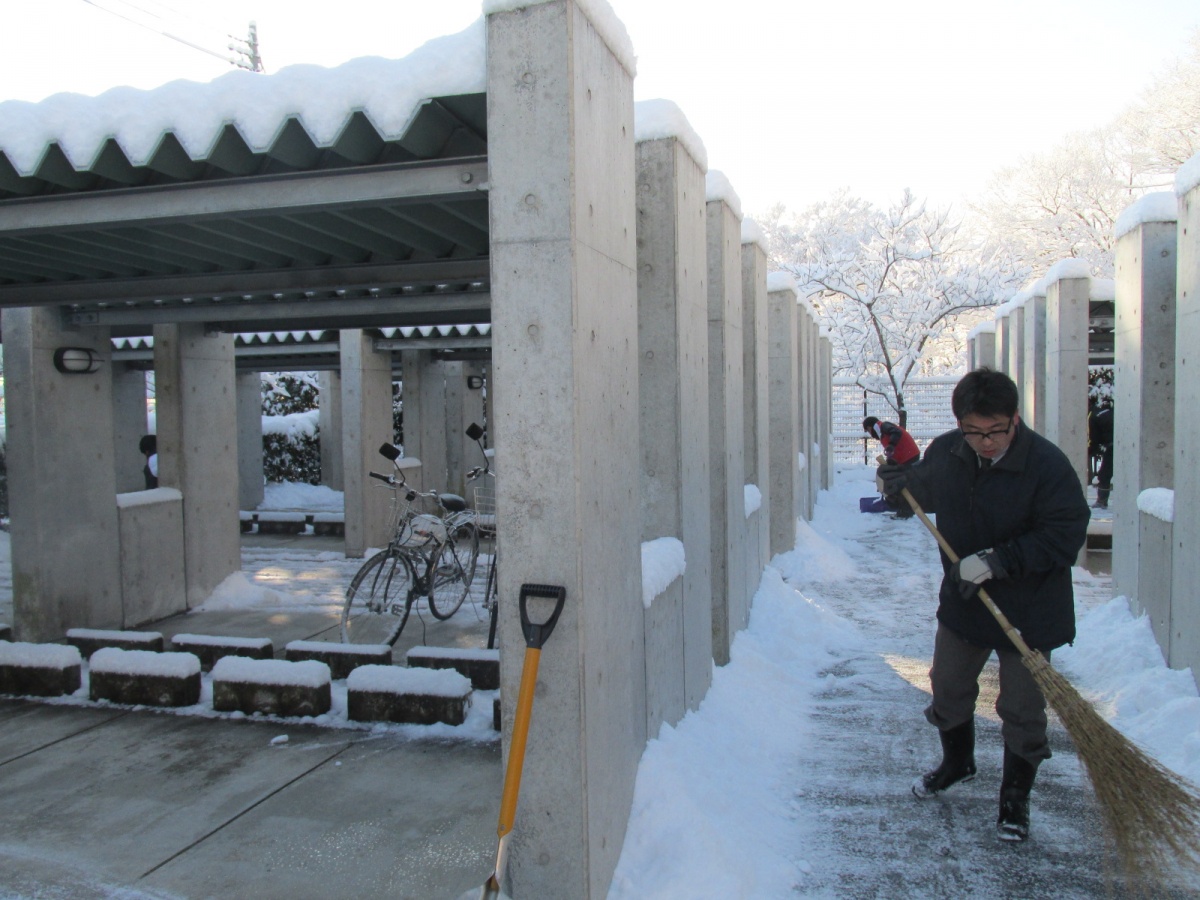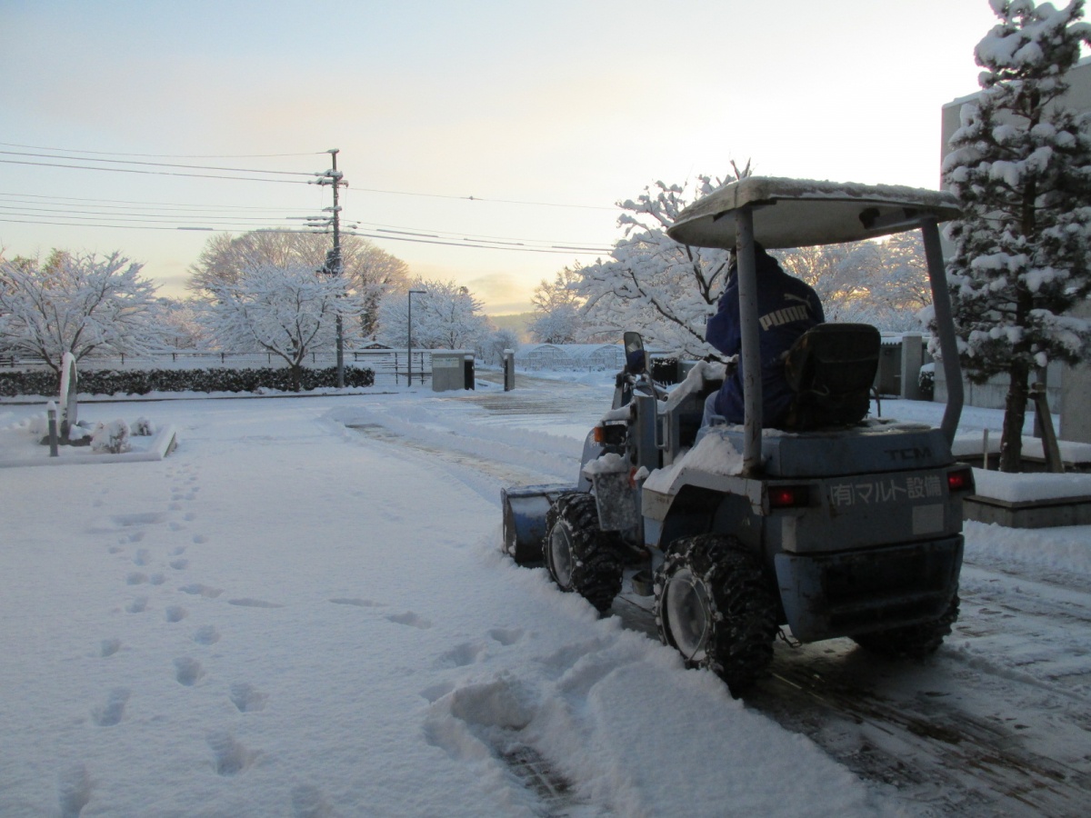 積雪の影響で本日は、2時間遅れ(10時25分)登校となります。路面はまだ凍結状態です。登校する際は、早めに家を出て、ペンギンのように歩幅を小さくして、スリップに十分注意して登校してください。