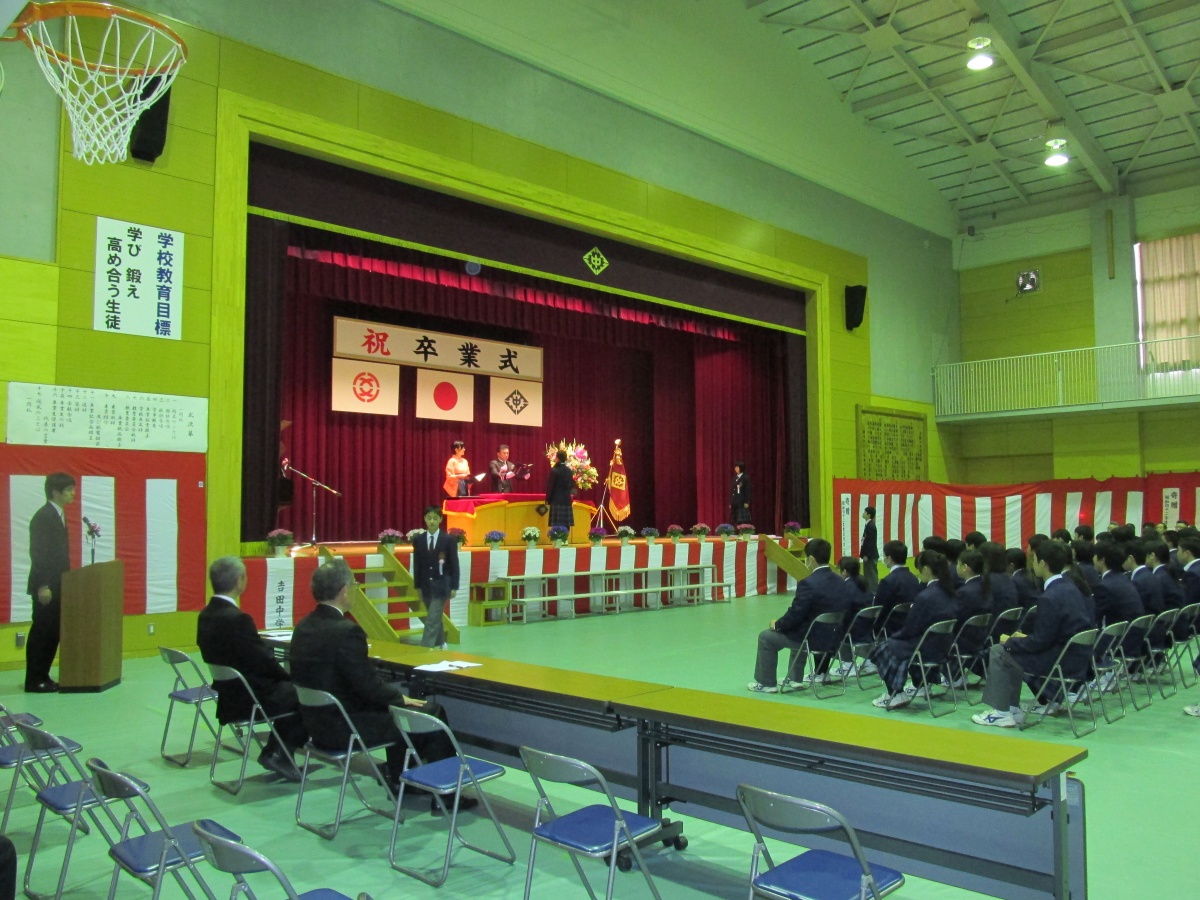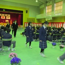 多くのご来賓・保護者の皆様のご臨席の下、「第51回卒業証書授与式」を挙行しました。3年生の皆さん、おめでとうございます!3年生に大変喜んでもらえたのが何よりです。また、1・2年生の態度も立派でした。式中、首が動いている生徒がいませんでした。こうした1・2年生の態度も感動的な卒業式の一因です。来年度が楽しみになる1・2年生の態度でした。