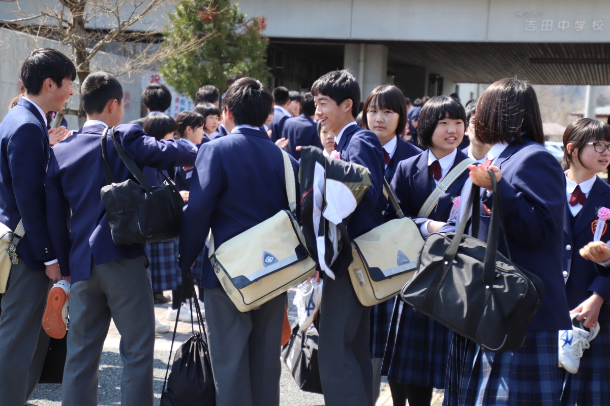 秩父市長・久喜邦康様、秩父市教育委員会委員・高野豊子様、地元選出の秩父市議会議員の先生方をはじめ、多くの御来賓の皆様の御臨席のもと、秩父市立吉田中学校第52回卒業証書授与式を盛大に挙行することができました。学校の顔として頑張ってきてくれた3年生の門出をお祝いでき、本当によかったです。4月からの新しい生活に向かって力強く羽ばたいてください!1・2年生も準備をはじめ、しっかりした態度で式に臨めてよかったです。