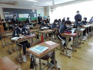 今年度2回目となる学校運営協議会を11月19日(金)に開催しました。始めに6校時の授業の様子をご覧いただき、その後会議室において、⑴これまでの教育活動についての報告 ⑵当面する課題(①生徒数減少に伴う部活動の在り方について ②男女問わず制服選択制の取り組みについて ③その他)についての熟議を行いました。