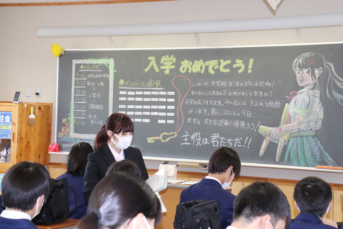1年生の担任による黒板アートが新入生たちを迎えました。
