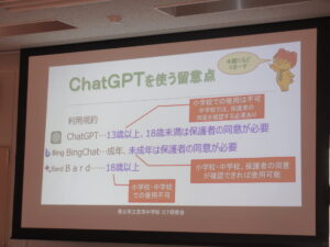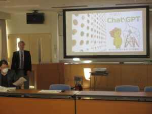 まず、今年度技術科を教えていただいている先生を講師として、「生成AIのチャットGPT」について学習する機会をもちました。