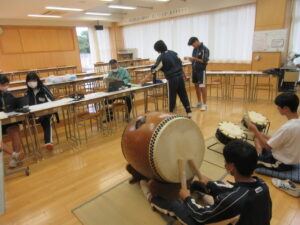 10月24日には、3年生の龍勢伝承学習が行われました。龍勢祭後の学習でしたが、本日も保存会の方々にお越しいただき、文化祭に向けて熱心にご指導をいただきました。落下傘作成、口上・太鼓練習、筒堀りなど各担当の作業がいよいよ最終段階に入ってきました。生徒たちは皆、真剣に指導者の教えを受けながら真剣に取り組んでいました。本日もありがとうございました。