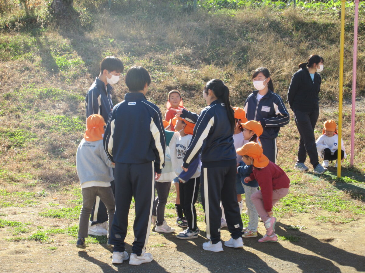 こども園では、4グループに分かれて、それぞれ2,3,4,5歳児クラスに入りました。最初はお互いに緊張している様子もありましたが、徐々に打ち解けて、笑顔で楽しそうに遊んだり、お世話をしたりしていました。