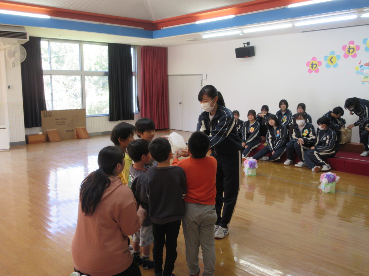 最後に、3年生から園児たちにプレゼントを渡しました。