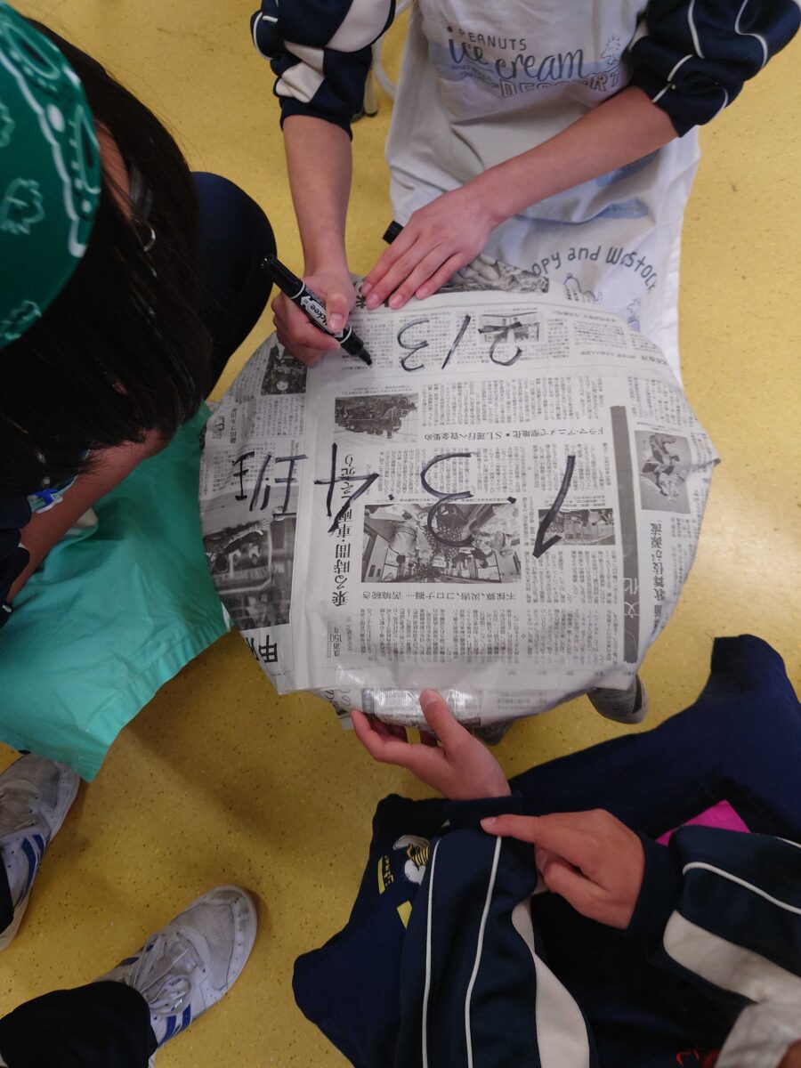午後、そのようにして軟らかく煮た大豆を使って、いよいよ1年生たちにとっての初めての体験、味噌づくりのスタートです。ファスナー付きのプラスチック製の袋に煮た大豆を入れ、一人一人が大豆を手でつぶす作業を行いました。十分に大豆がつぶれたら、麹や塩をよく混ぜます。次にそれらを玉のように丸めていく作業を、とても楽しそうに行っていました。玉にした味噌を樽に詰めていく作業も見ものです。空気が入らないように味噌の玉を投げ込むように入れていくのが、味噌づくりのクライマックスです。味噌玉を樽に敷き詰めたら、樽に蓋をして、10か月後の開封を楽しみにメッセージを書き込みました。さあ、今回の味噌はどのように美味しくなるか、今から楽しみですね。