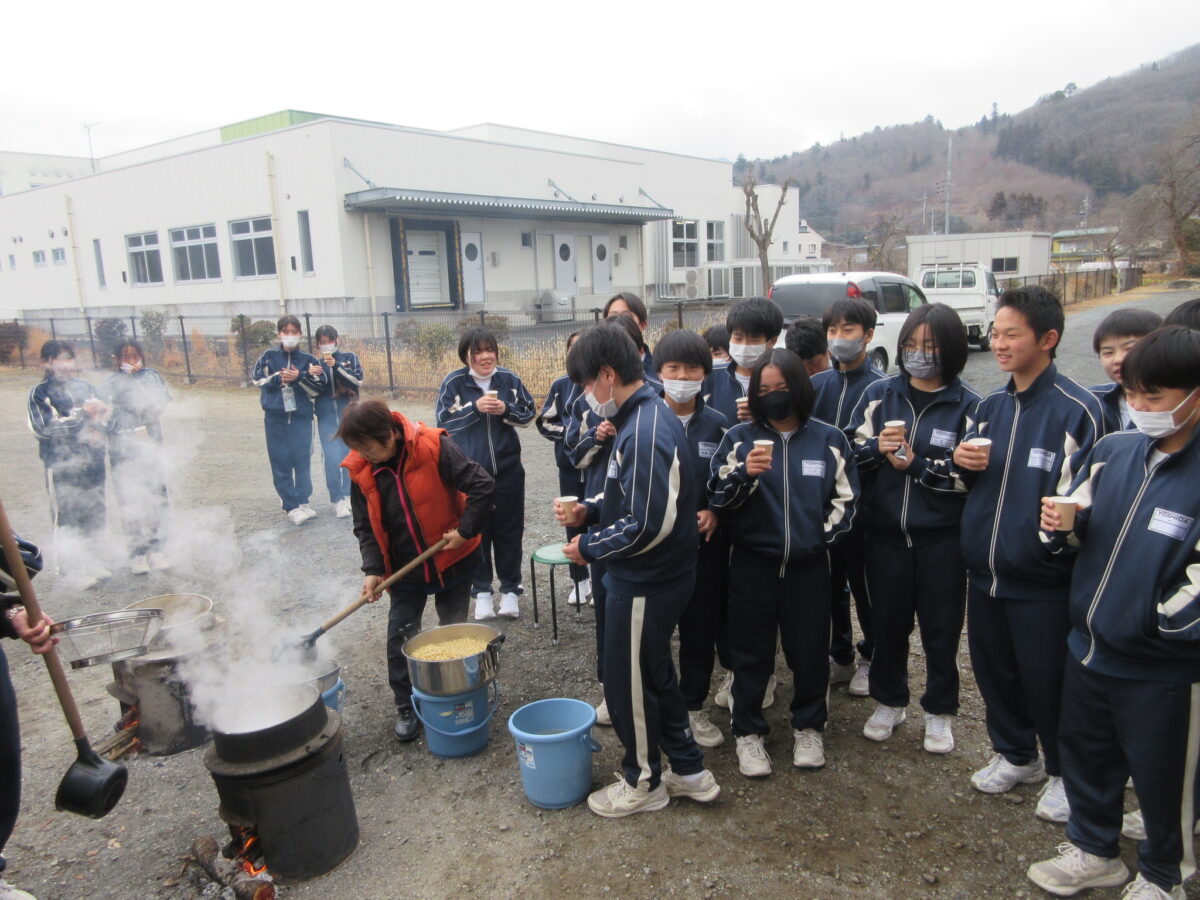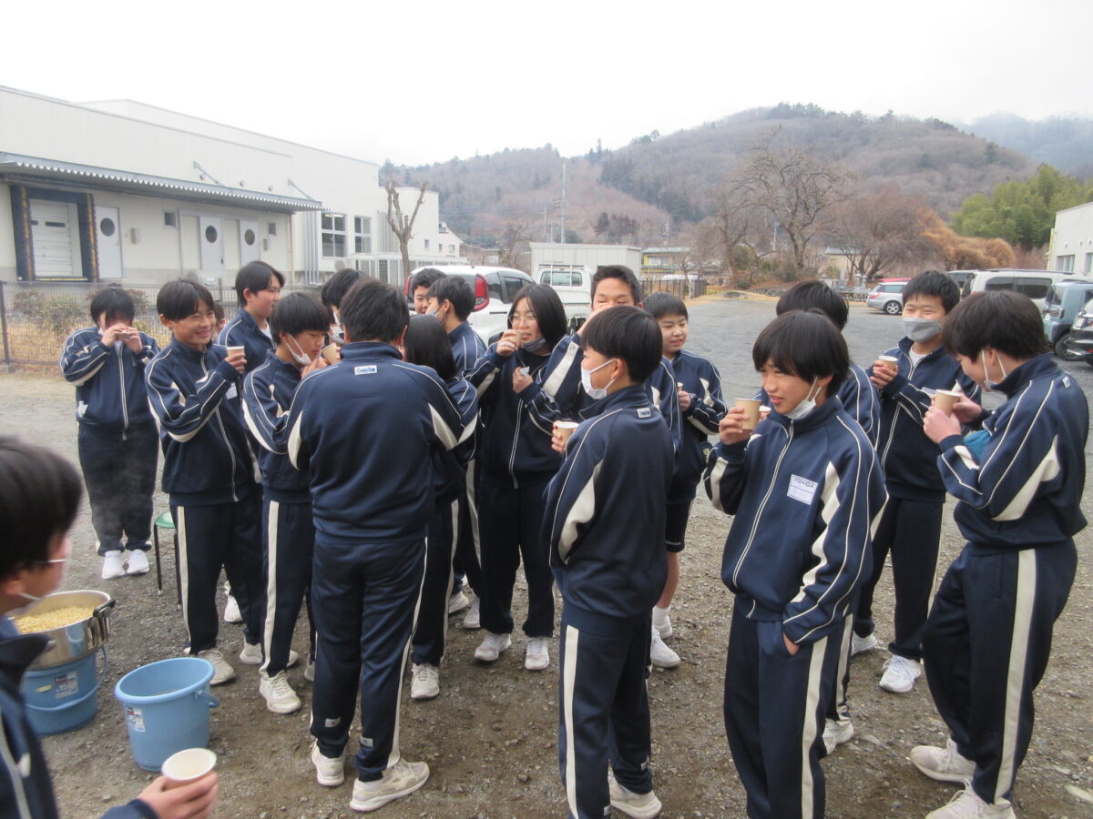 今年度1年をとおして、大豆の栽培そして味噌づくりまでご指導いただいた地元の方々には心より感謝申しげます。ありがとうございました。吉田中の1年生たちはこの取組を通して、大豆の種植えから収穫、脱穀そして味噌づくりという経験を経て、普段何気なく食べている味噌というものが、大変な時間や労力をかけてできるものだということを理解できたことと思います。物を食すということが簡単なことではないことを少しでも実感できることで、「食への感謝の心」が醸成されていくことと期待しています。このような貴重な学びの機会が得られたことには、地元の方々の協力があってこそです。吉田中学校の教育活動が地元の方々に支えられていると改めて感じた1日となりました。どうもありがとうございました。