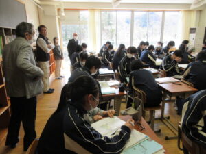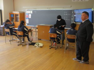 また、授業参観もしていただきました。1年生の数学と、2年生の英語を見ていただきました。