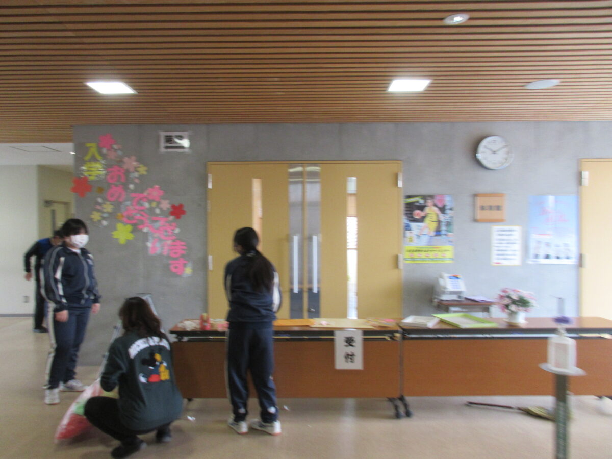 4月7日、新2、3年生対象の準備登校がありました。最初に新しい職員を紹介し、その後、校歌の練習となりました。徐々に良い声が出てきて、明日も期待できそうです。そのあと、分担して、準備がはじまりました。心をこめて、丁寧に掃除や準備をする生徒、自分の分担が終わると、他の人の仕事を手伝う生徒もいて、感心しました。