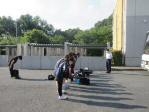 6月19日、朝7:15 予定どおり、学総体に向けて、まず男女ソフトテニスと柔道が出発しました。このあと、8:25頃に、サッカーと女子バスケットボールが本校を出発します。かなりの暑さが予想されますが、体調を整えて、力を発揮できることを願っています。